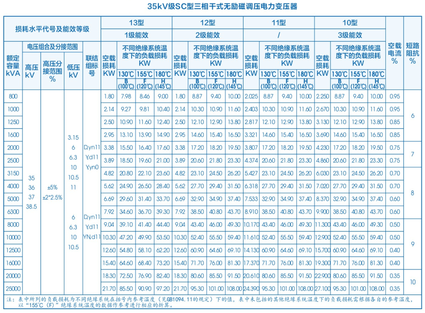 电压等级35kV,变压器容量30~20000kVA,该变压器是我公司在消化吸收引进技术的基础上硏制开发的35kV级绝缘BCDQ.CC,产品的设计与制造均满足IEC60076.GB1094.GB/T10228等标准的要求,产品将35kV电网电源直接降低为400V配电电源或10kV输电电源为用户供电。具有显著优点,为越来越多的工程所采用。